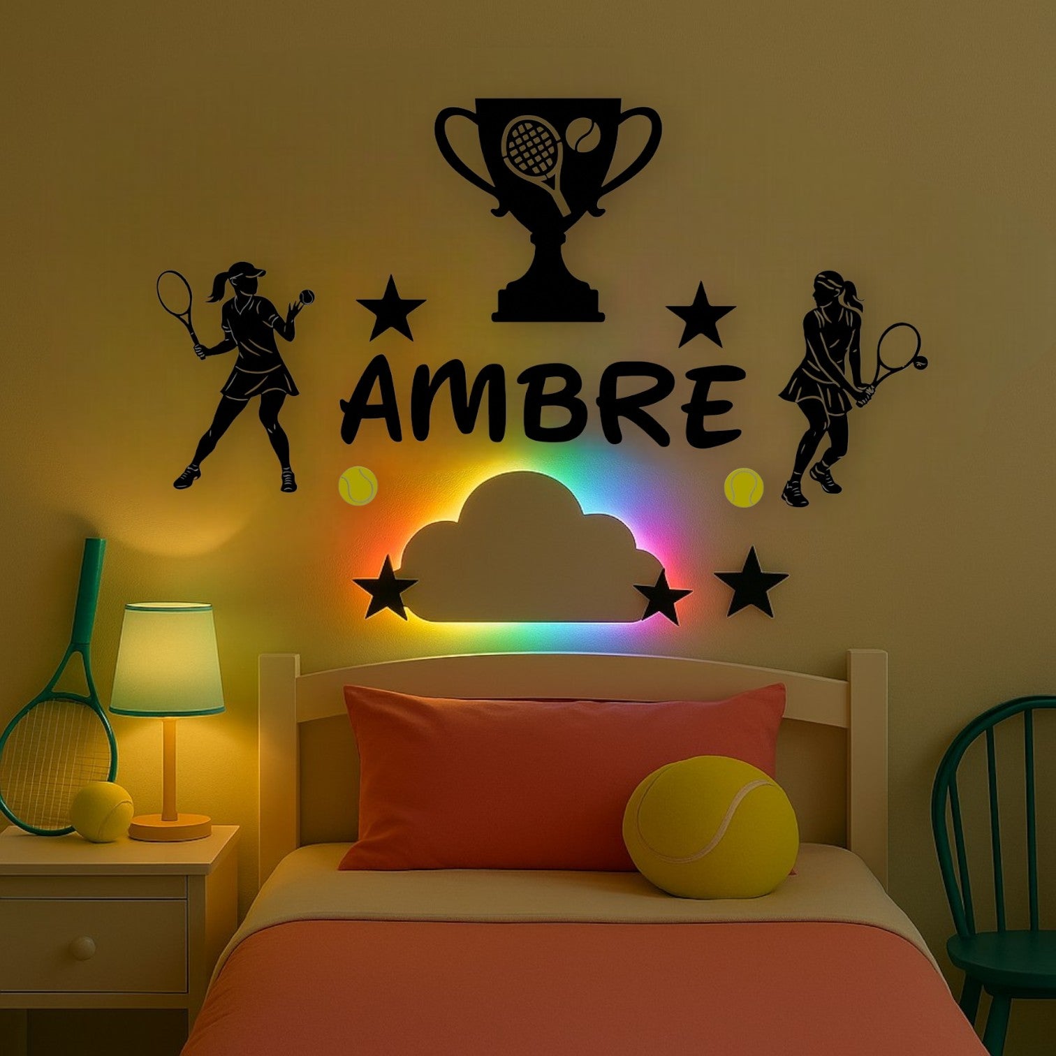 Offrez à votre enfant une décoration murale tennis personnalisée avec prénom, parfaite pour les petites championnes en herbe.
