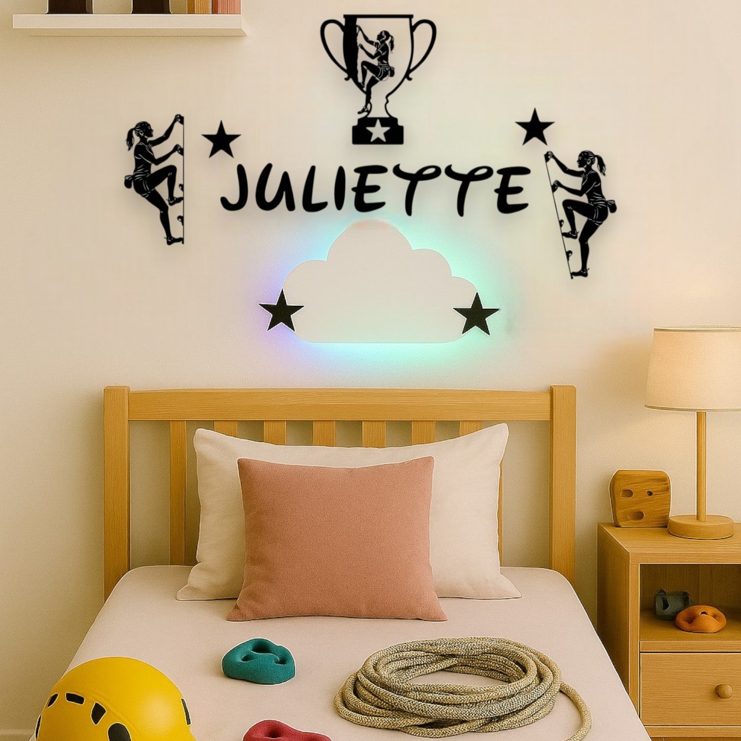 Ajoutez une touche lumineuse spectaculaire avec un halo coloré qui illumine le prénom et la déco.