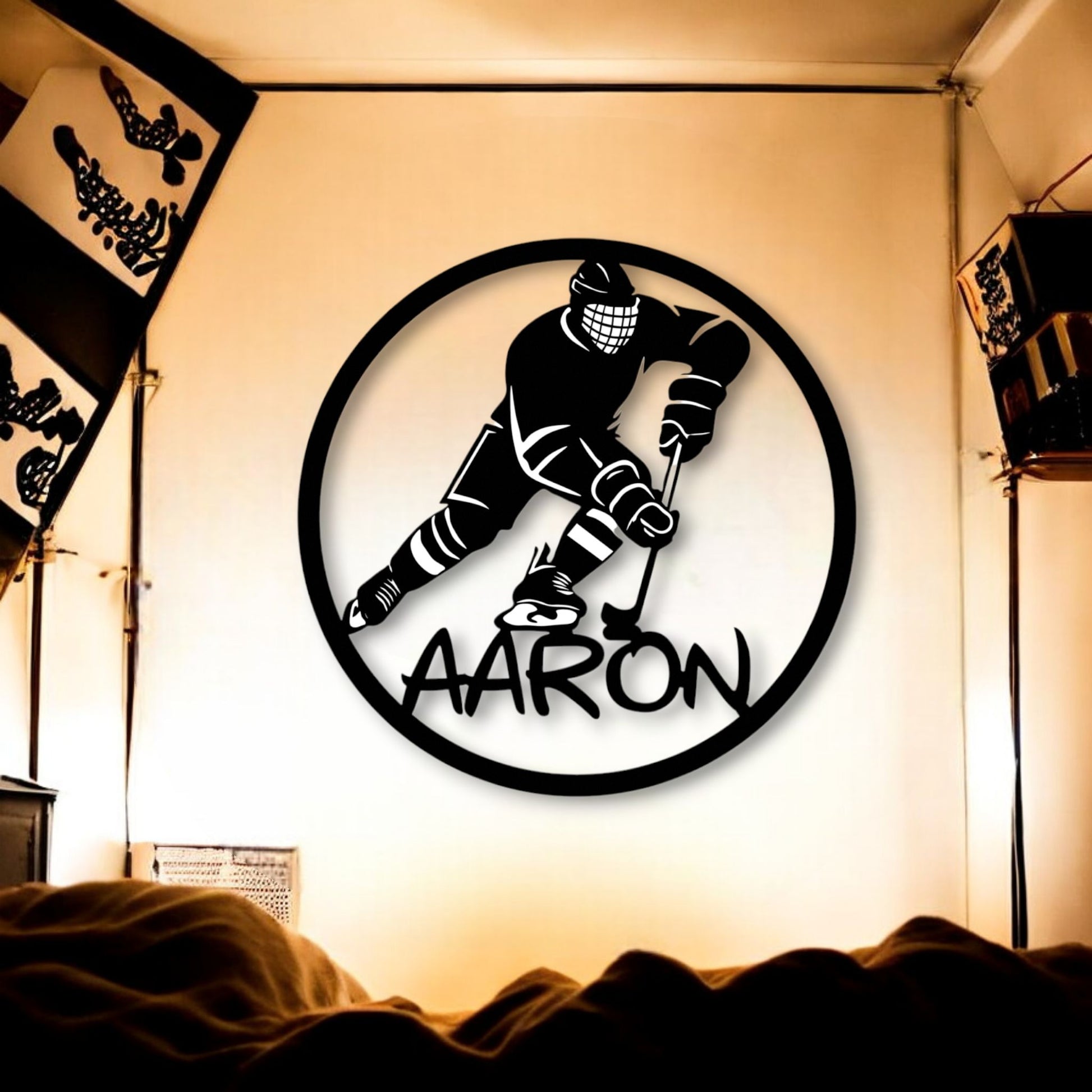 Faites de cette décoration un élément personnel et significatif en ajoutant le prénom de votre enfant. Qu'il rêve de devenir le prochain grand joueur de hockey ou qu'il adore simplement ce sport, son prénom gravé sur cette œuvre lui rappellera son amour pour le jeu à chaque fois qu'il entrera dans sa chambre.