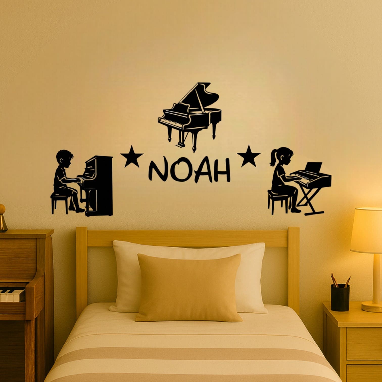 🎵 Faites vibrer la chambre de votre enfant avec cette décoration murale piano personnalisée, élégante et pleine de douceur musicale.