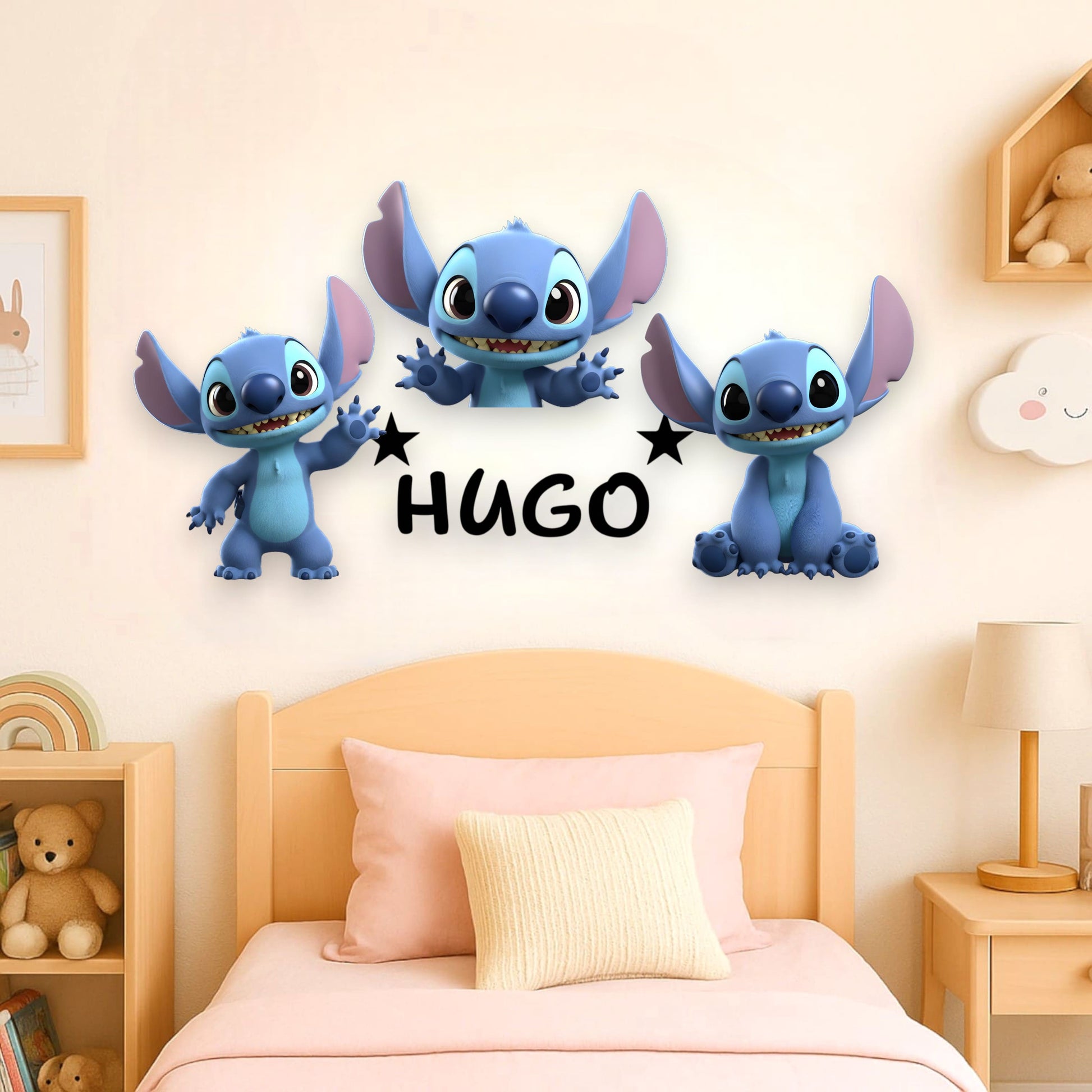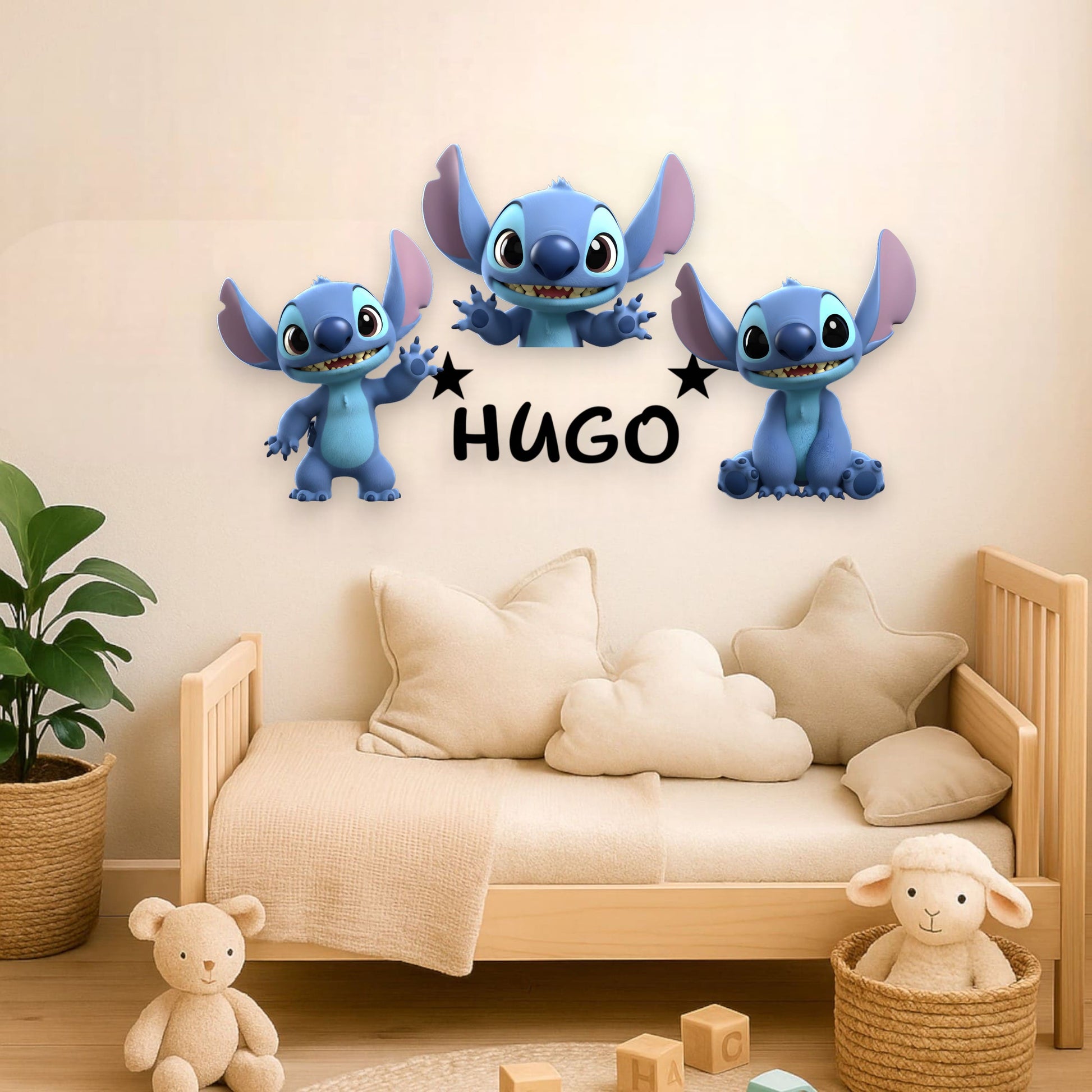 Offrez un univers de tendresse et de bonne humeur avec cette décoration murale personnalisée inspirée de Stitch.