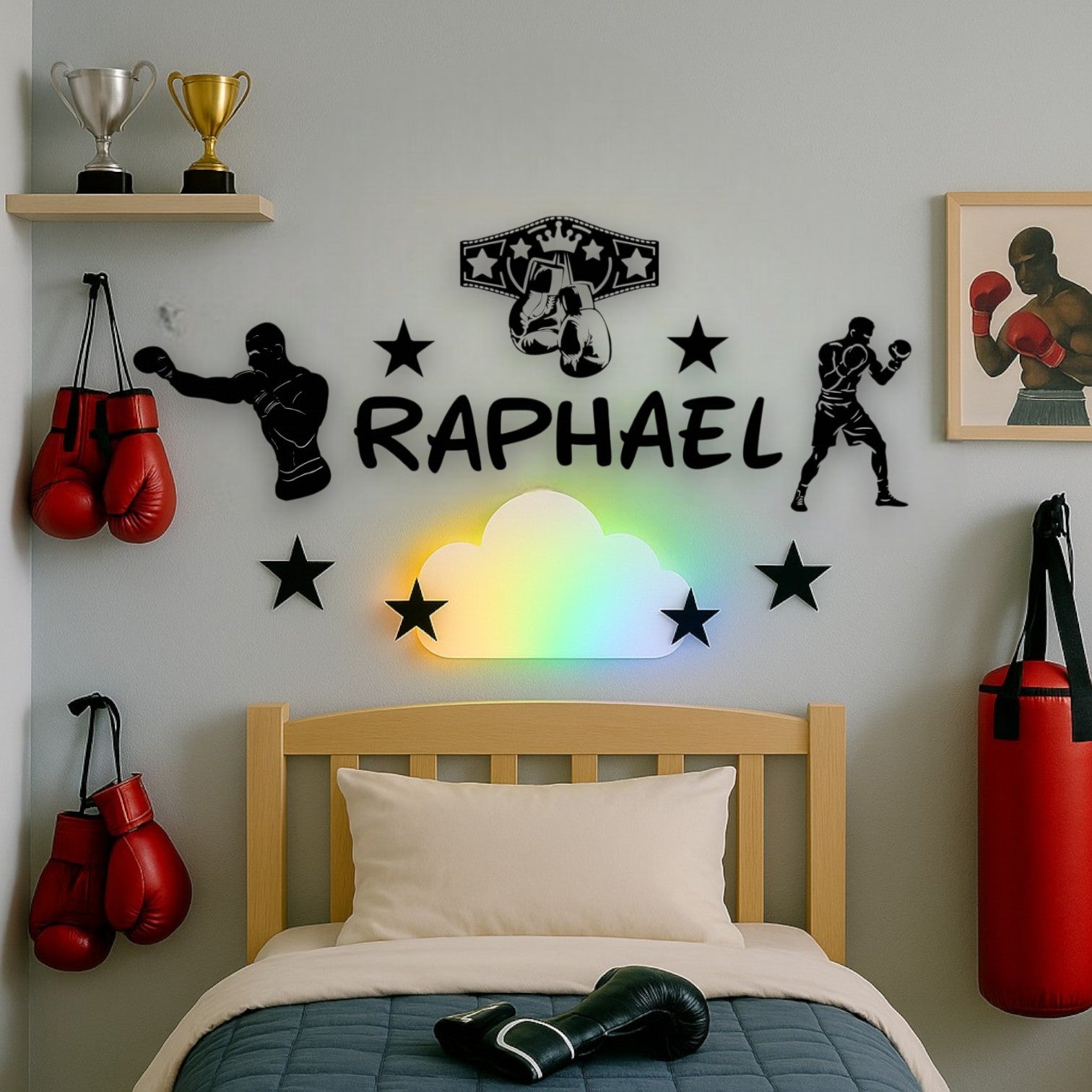 Offre à ton enfant une décoration murale boxe personnalisée avec prénom qui transformera sa chambre en véritable salle d’entraînement.