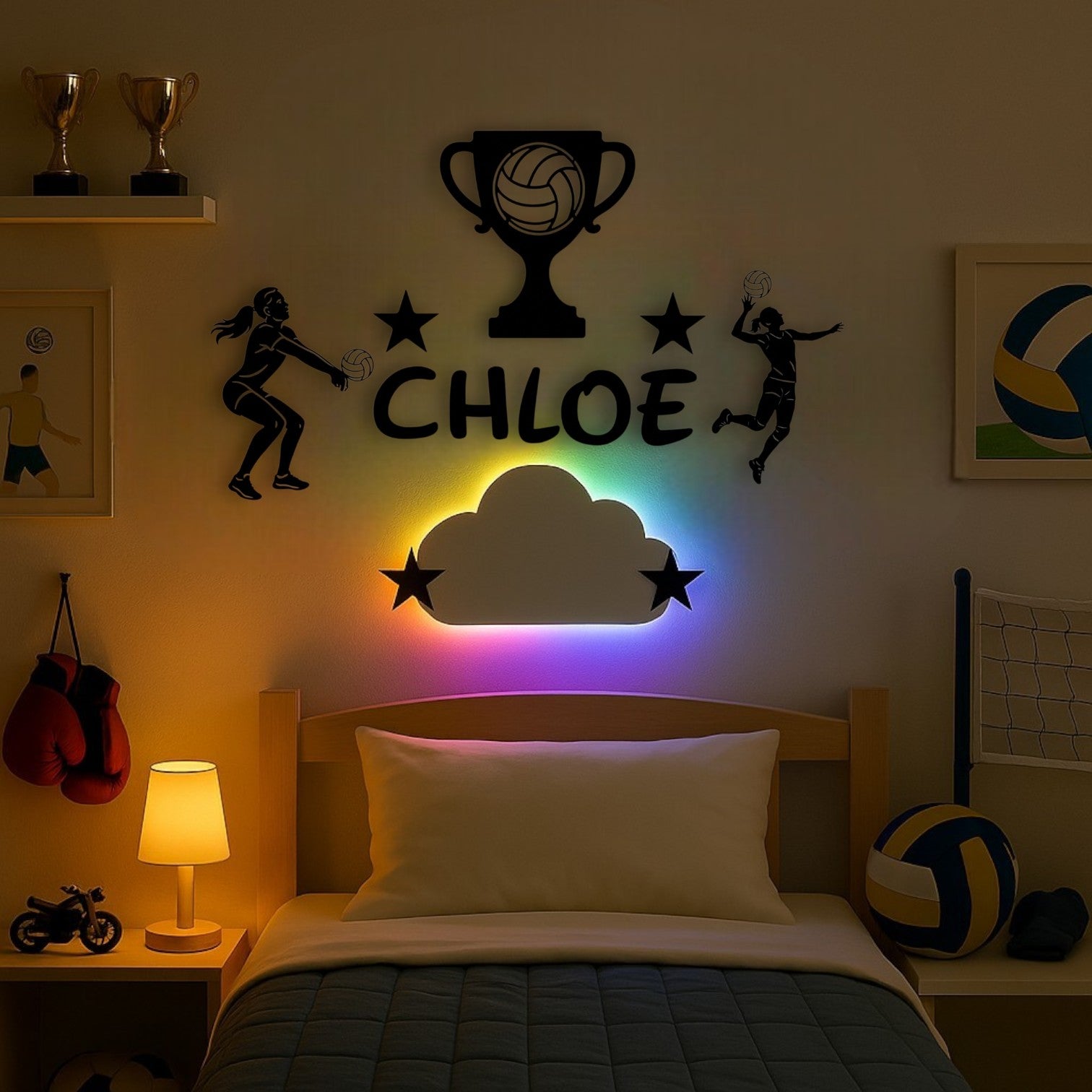 Offrez à votre enfant une décoration murale volley-ball personnalisée avec prénom, parfaite pour les petites passionnées du terrain.