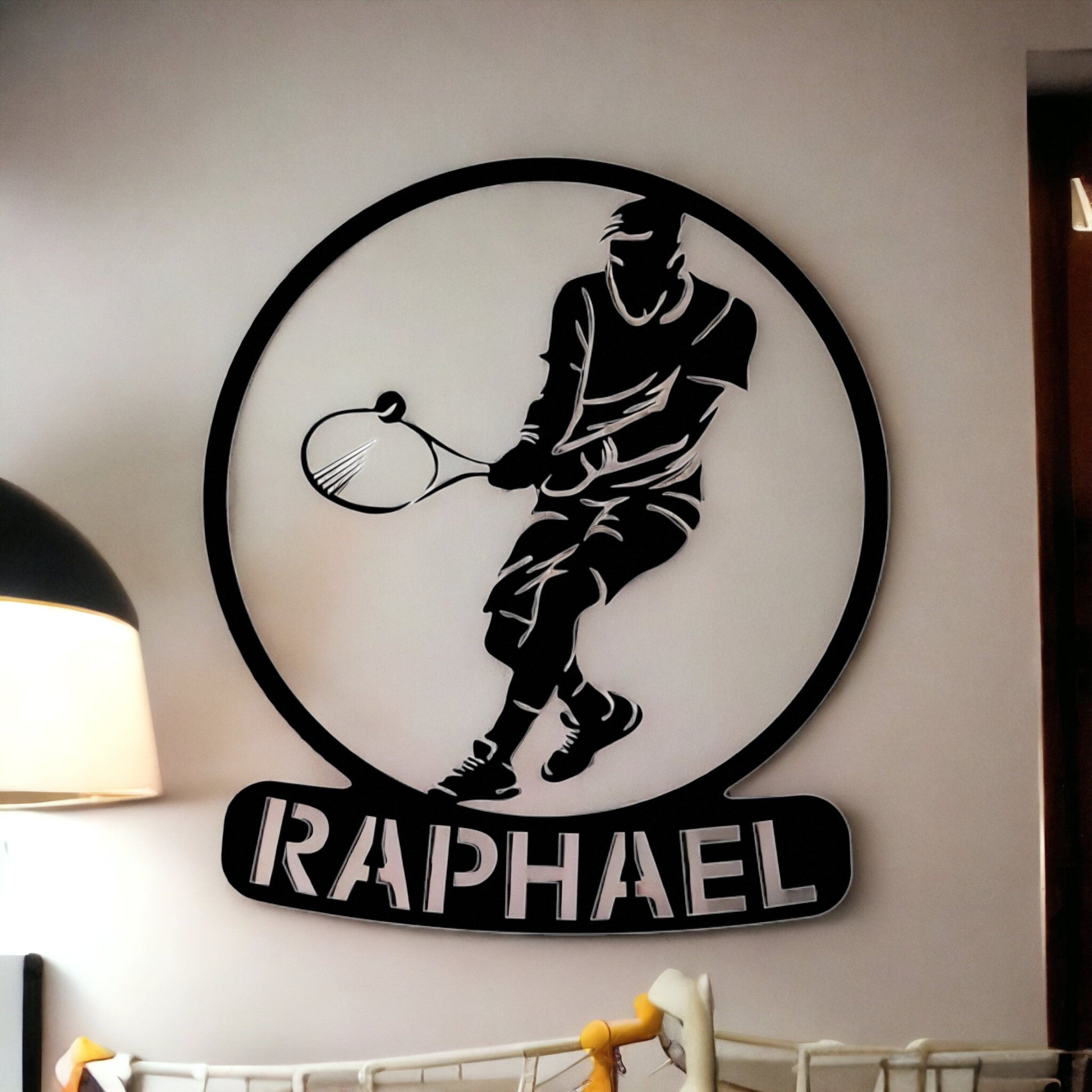 Amenez la passion du tennis dans la chambre de votre jeune champion avec notre décoration murale en forme de joueur de tennis en 3D. Personnalisez-la avec son prénom pour un effet unique et motivant. 🌟👦